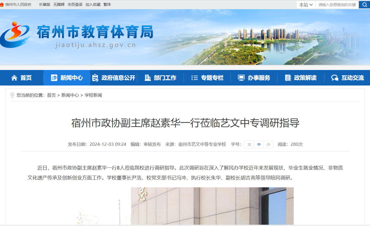 【市教體局】宿州市政協(xié)副主席趙素華一行蒞臨藝文中專調(diào)研指導(dǎo)