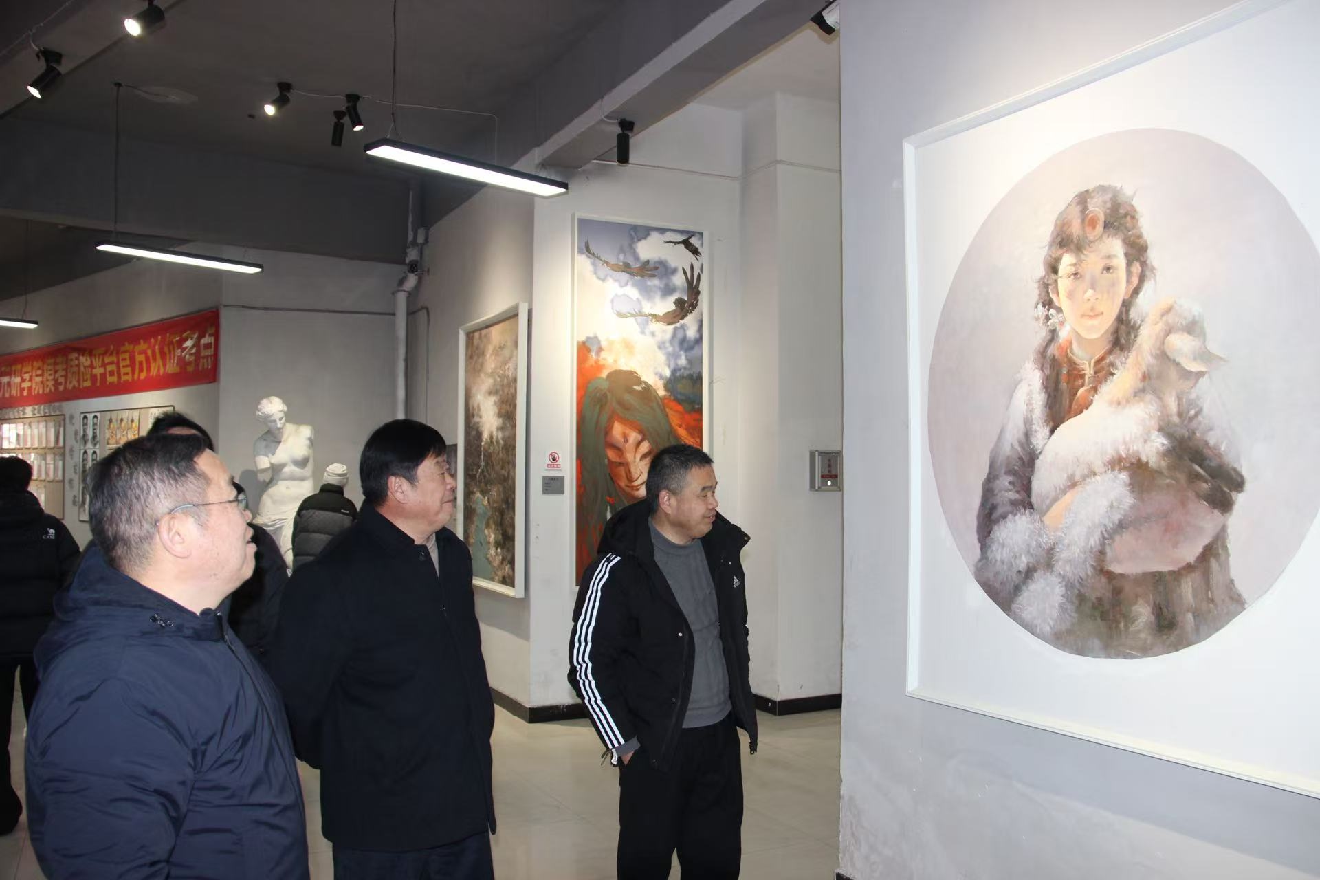 隨后,專家一行來到美術(shù)部展廳,參觀我校教師的藝術(shù)作品。從寫實主義的油畫到抽象表達的當代藝術(shù),從傳統(tǒng)水墨到跨界融合的新媒體藝術(shù),豐富多樣的創(chuàng)作形式展現(xiàn)了我校教師深厚的藝術(shù)功底與創(chuàng)新精神。趙世鋒教授饒有興致地點評作品,從藝術(shù)語言的運用到文化內(nèi)涵的表達,提出諸多專業(yè)見解;安娜博士則從俄羅斯藝術(shù)視角出發(fā),分享不同文化背景下對藝術(shù)作品的解讀,讓在場師生深受啟發(fā)。參觀過程中,兩位專家還與學生們親切交流,詢問創(chuàng)作思路,鼓勵他們大膽探索,在藝術(shù)道路上保持熱愛與執(zhí)著。